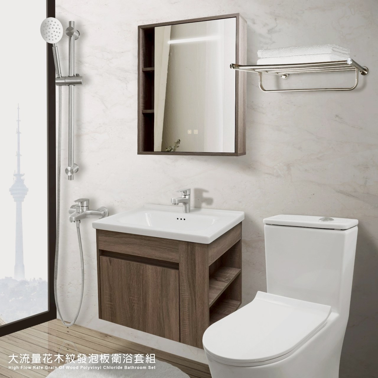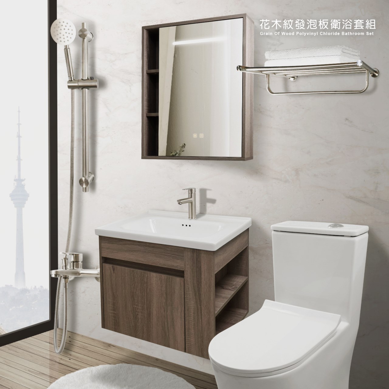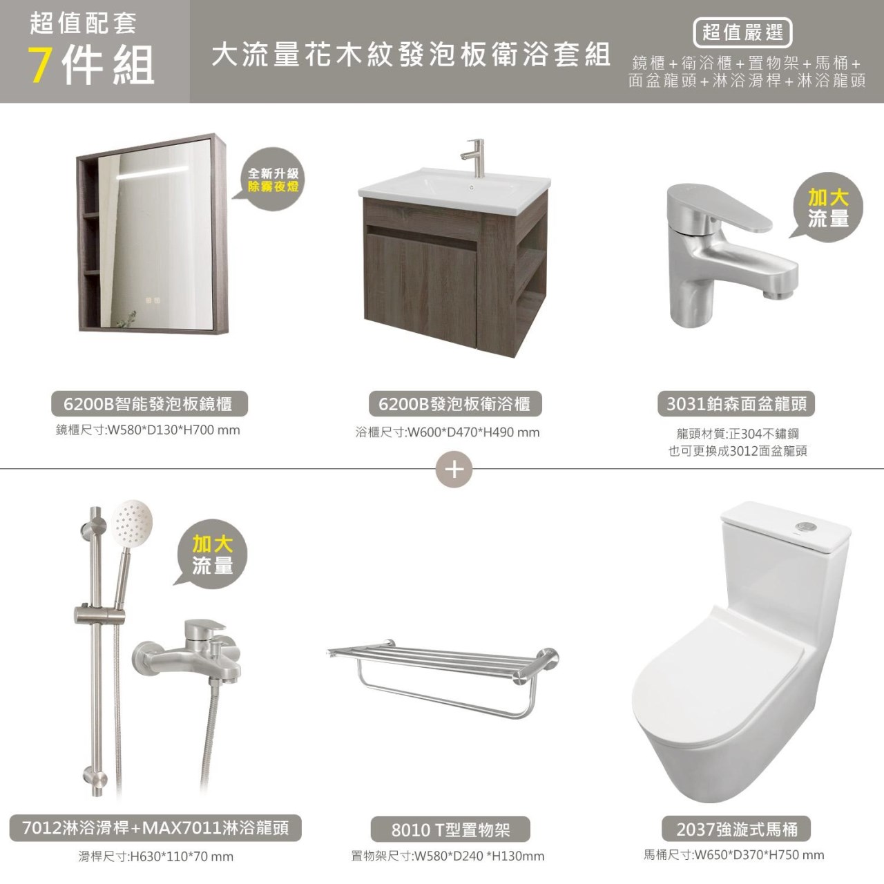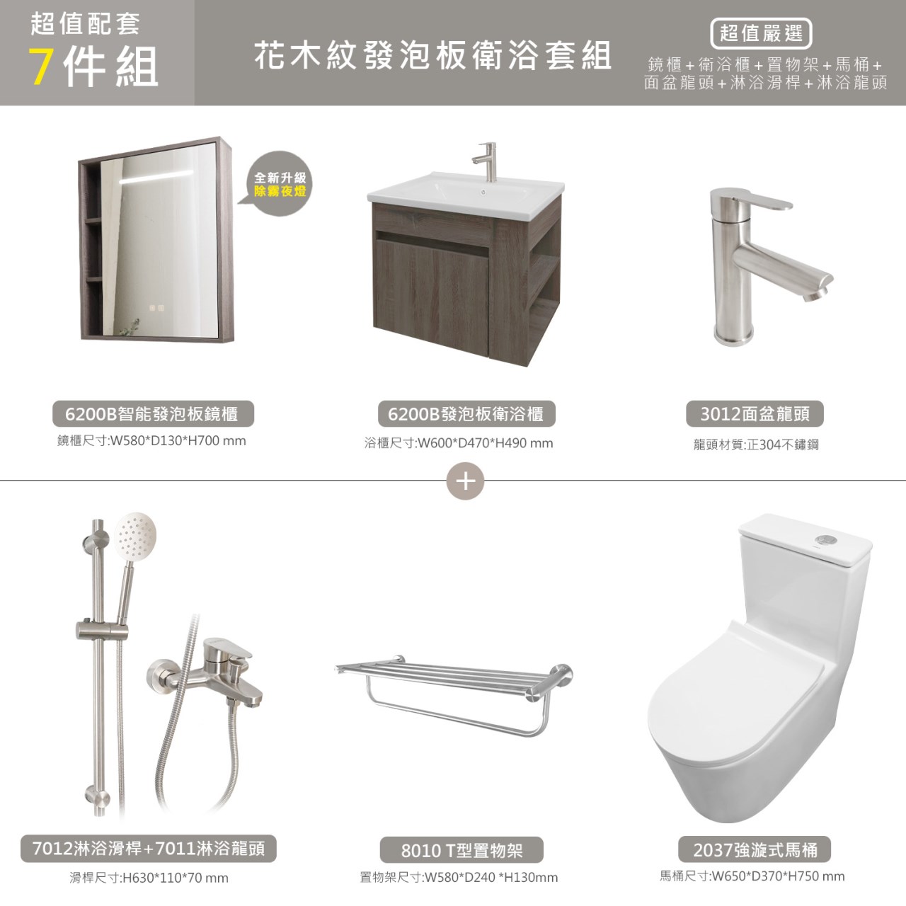 花木紋發泡板側開衛浴7件組