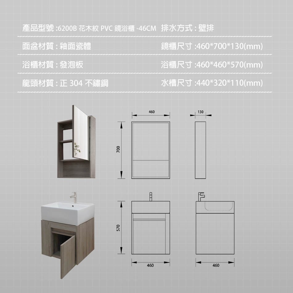 ● 浴櫃尺寸/60公分款:W600*D470*530 mm