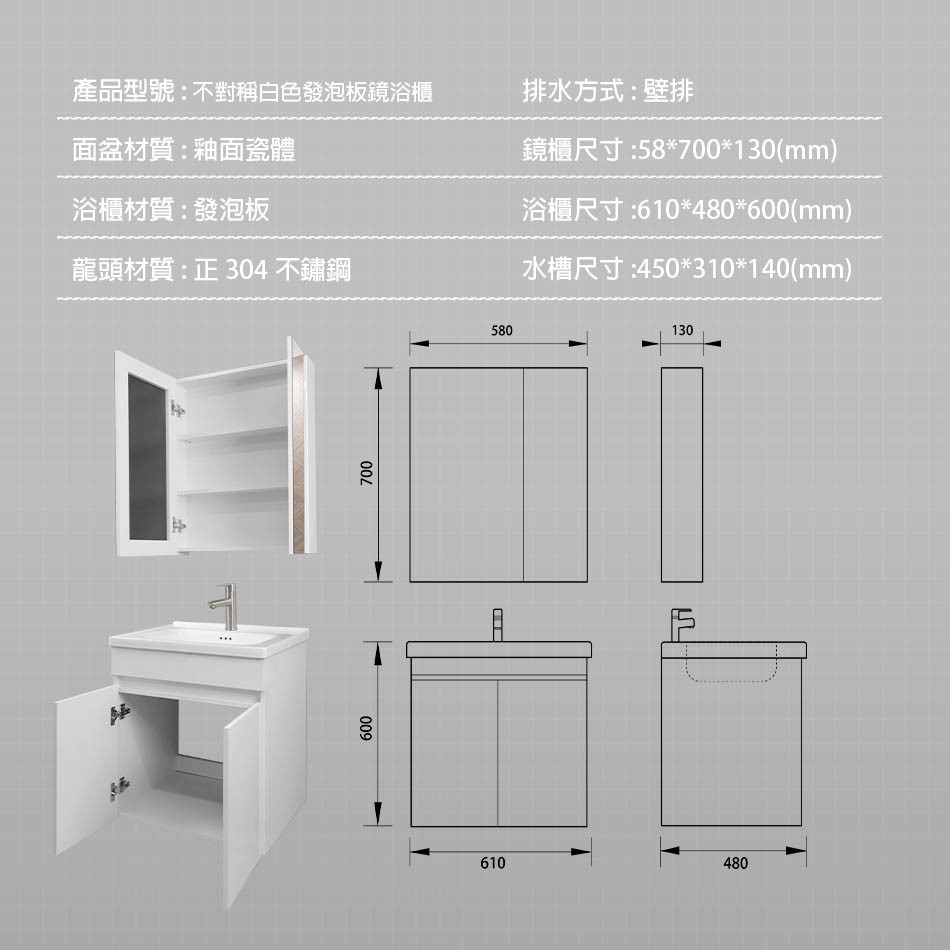 ● 鏡櫃尺寸:W580*D130*H700 mm
