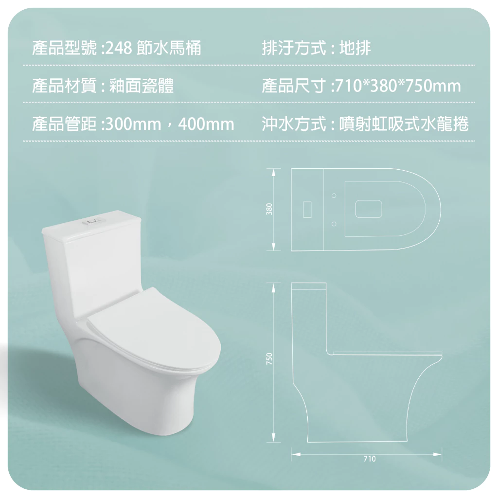 ● 馬桶尺寸:W710*D380*H750