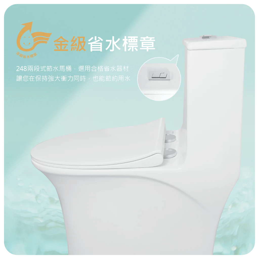 金級省水標章 248節水馬桶 噴射虹吸式雙龍捲 智潔釉 沖水優化 無死角 抗菌