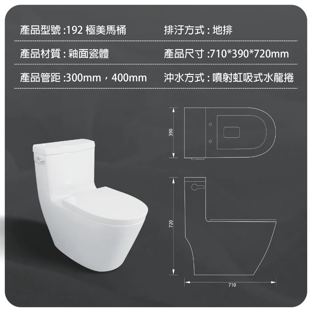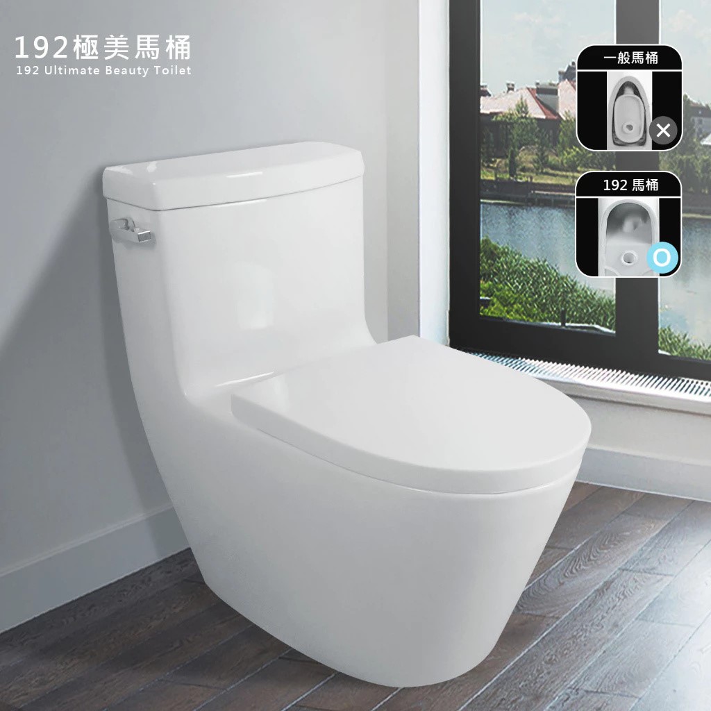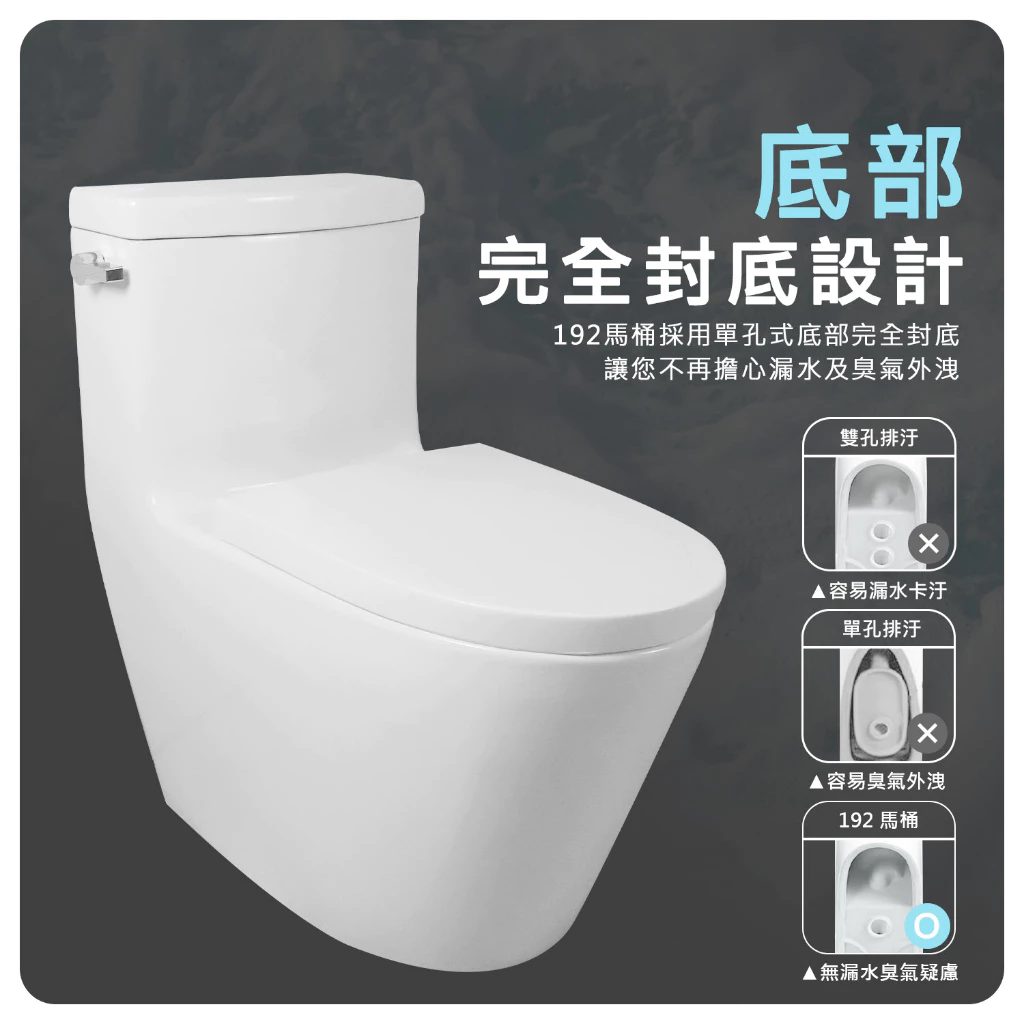 > 單孔排汙 192極美馬桶 噴射虹吸式雙龍捲 智潔釉 人體工學 抗菌