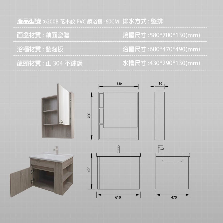 ● 鏡櫃尺寸:W580*D130*H700 mm
