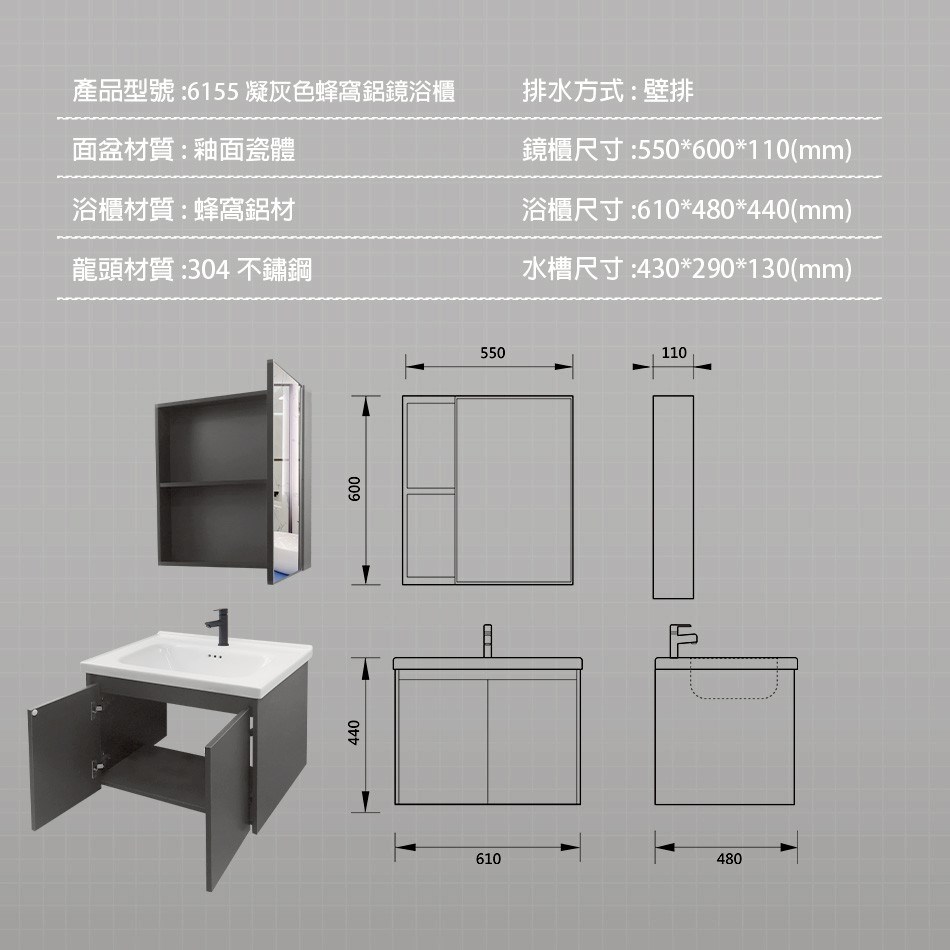 ● 衛浴櫃尺寸:W610*D480*440 mm