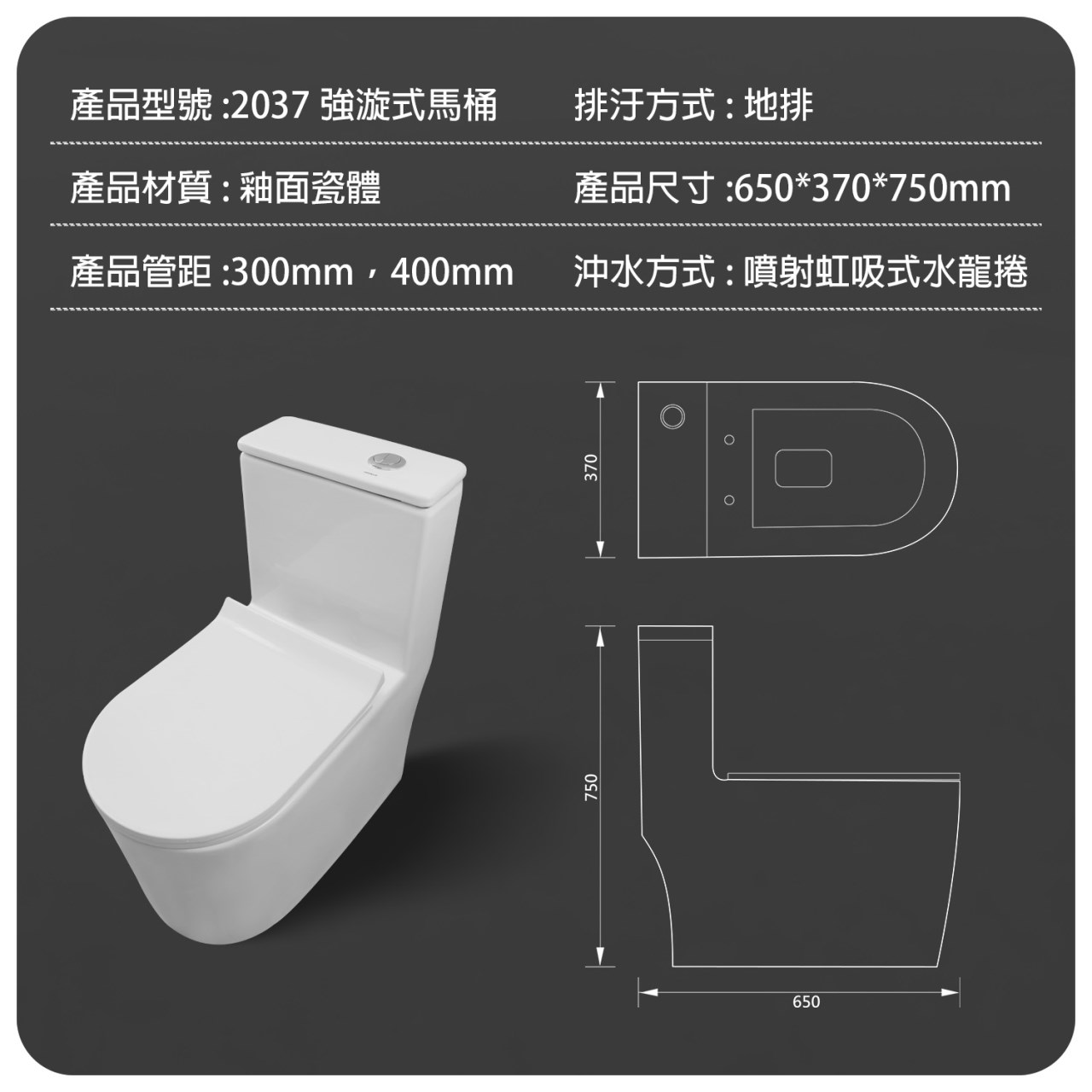 > 2037強漩式馬桶 噴射虹吸式雙龍捲 智潔釉 洗淨力強 安靜 污垢不附著 抗菌 -複製