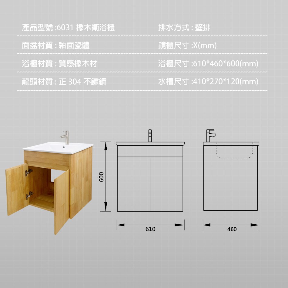 ● 浴櫃尺寸:W610*D460*H600 mm