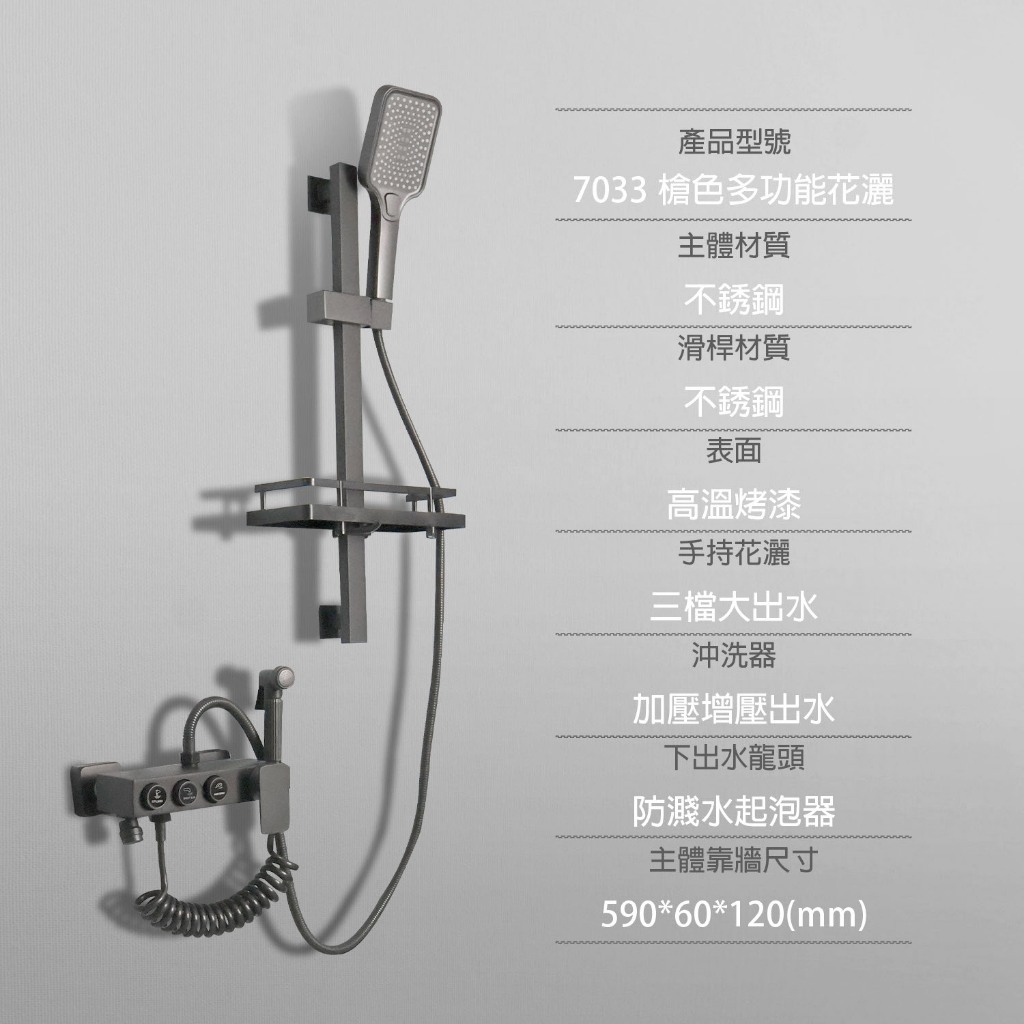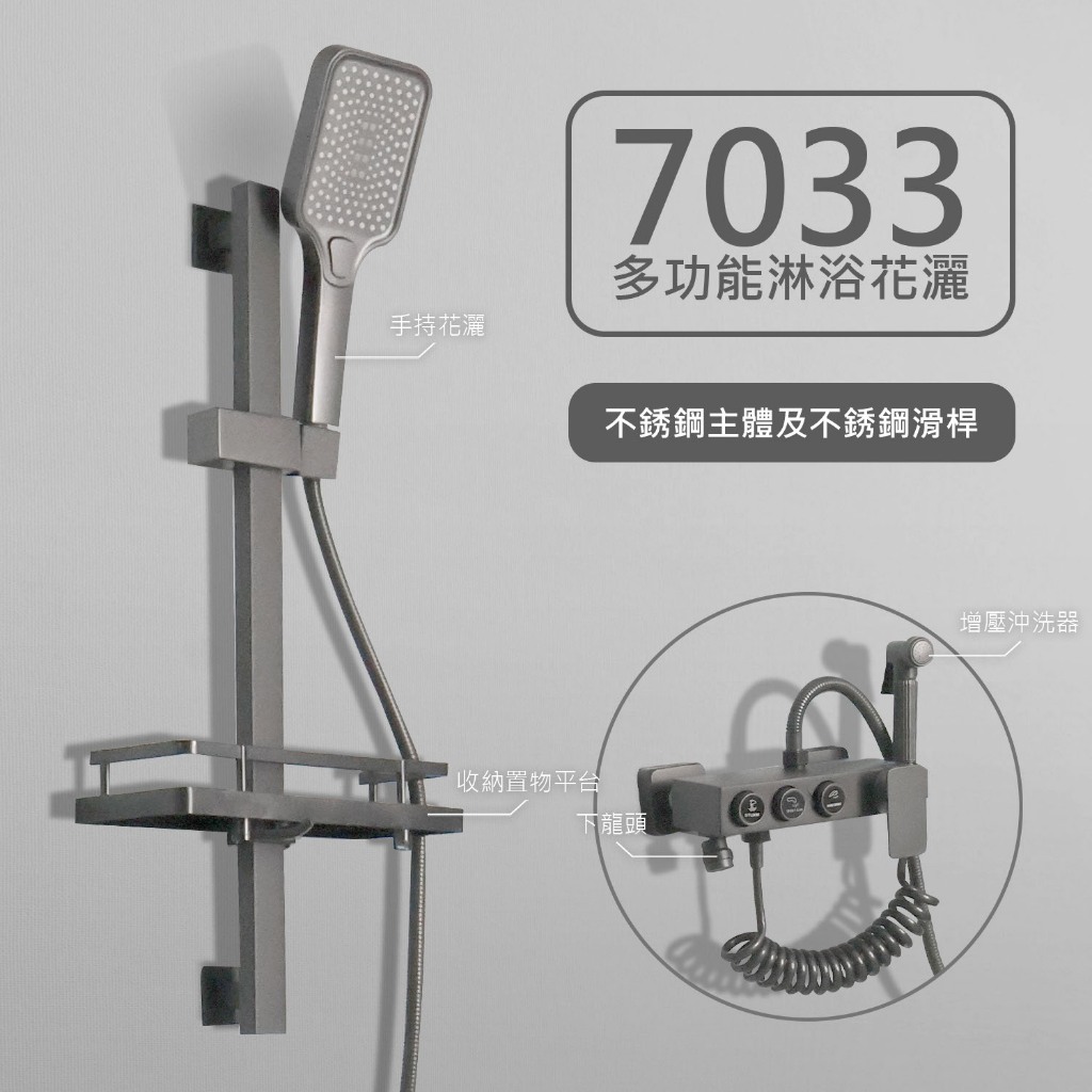 > 7033槍色多功能淋浴龍頭&7032多角度置物調節滑桿