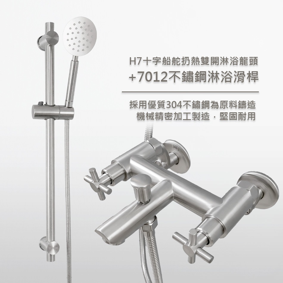 大流量H7十字船舵冷熱雙開淋浴龍頭&7012淋浴滑桿