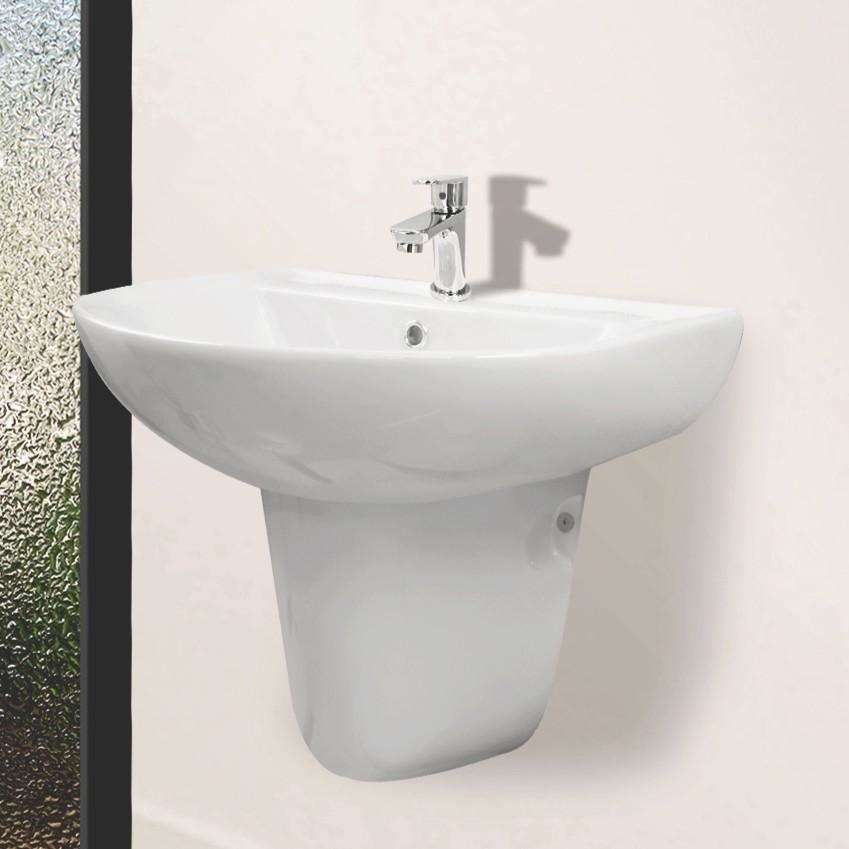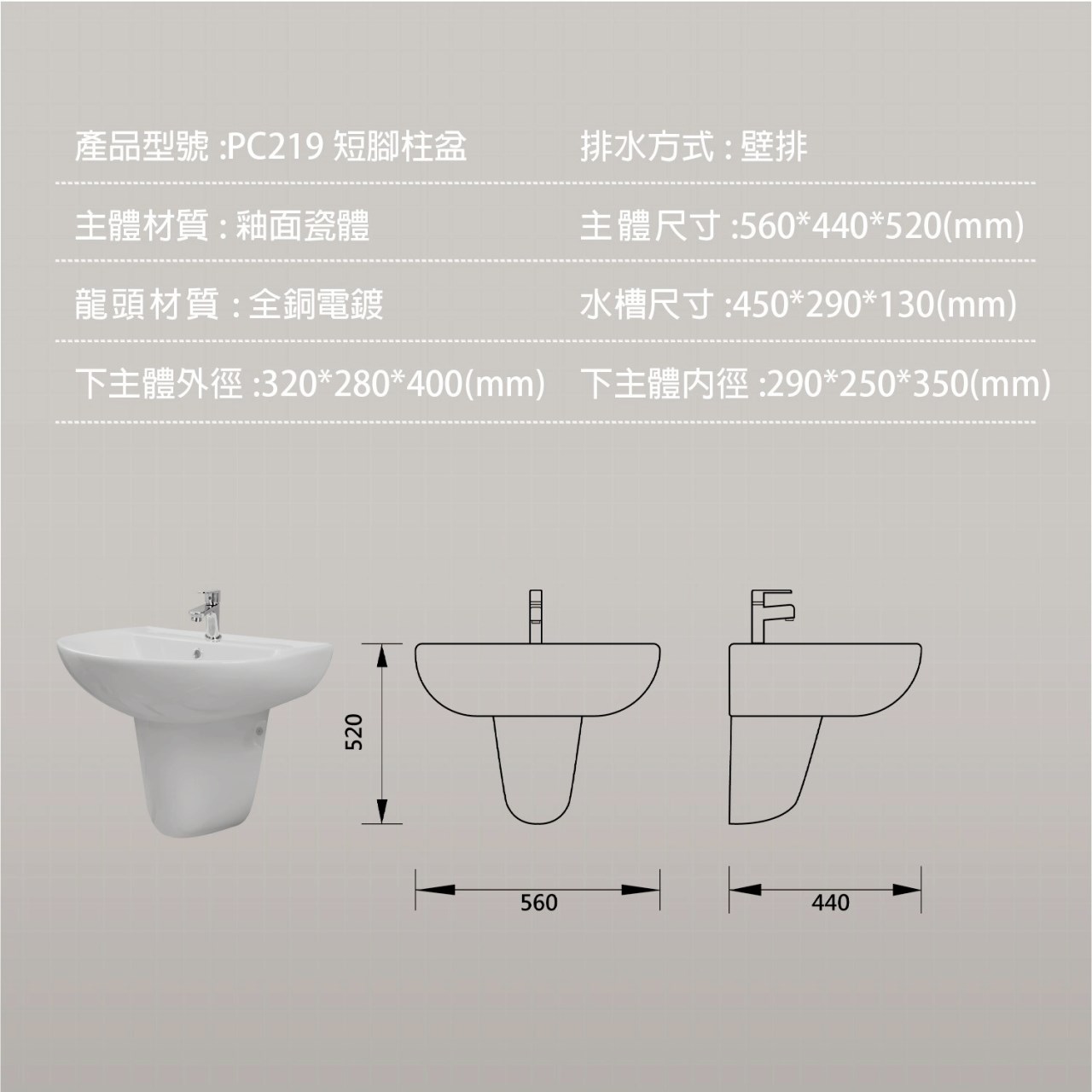 PC219 短腳柱 白瓷釉面 56公分 陶瓷面盆 全銅電鍍龍頭