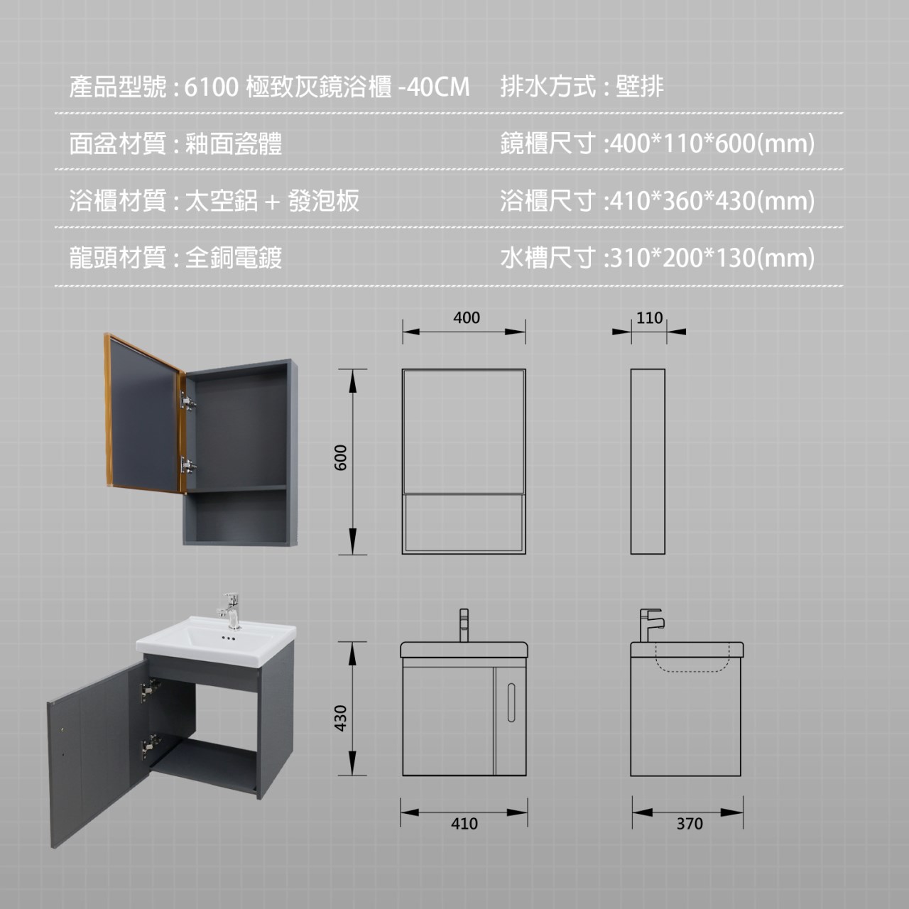 ● 排水方式:壁排 ● 主體材質:蜂窩鋁 ● 鏡櫃尺寸:W400*D90*H600 mm ● 浴櫃尺寸:W400*D365*H400 mm ● 附贈:3000龍頭 ● 溫馨提醒: 尺寸手工測量略有誤差1-2cm ●出廠批不同略有誤差已實際收到實品為主,如介意者請勿下單