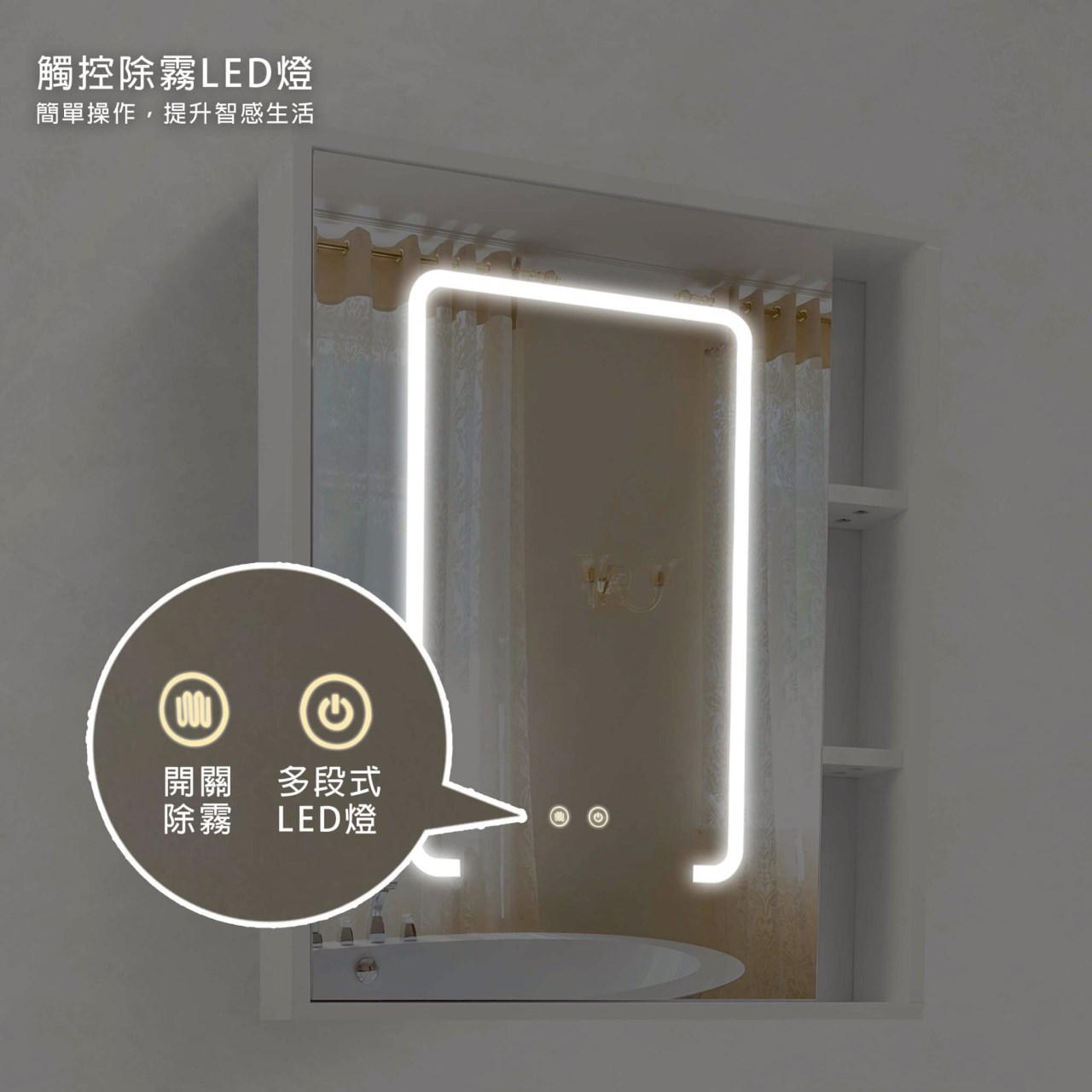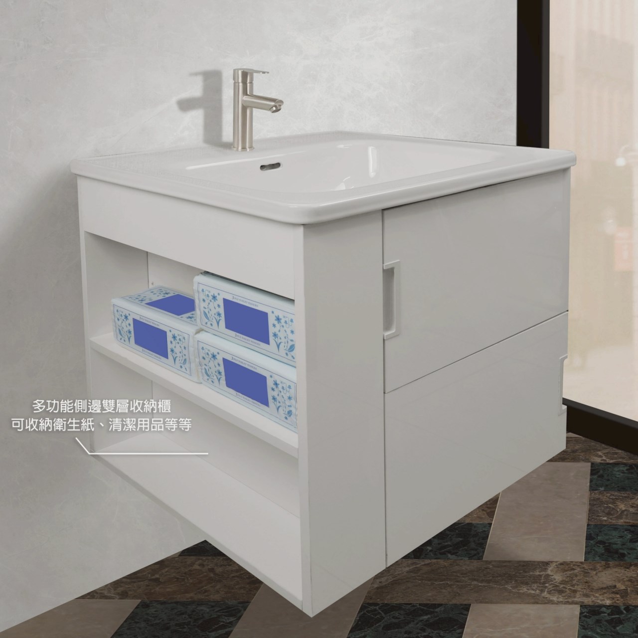 1) 側邊可置物收納,充分規劃浴室收納