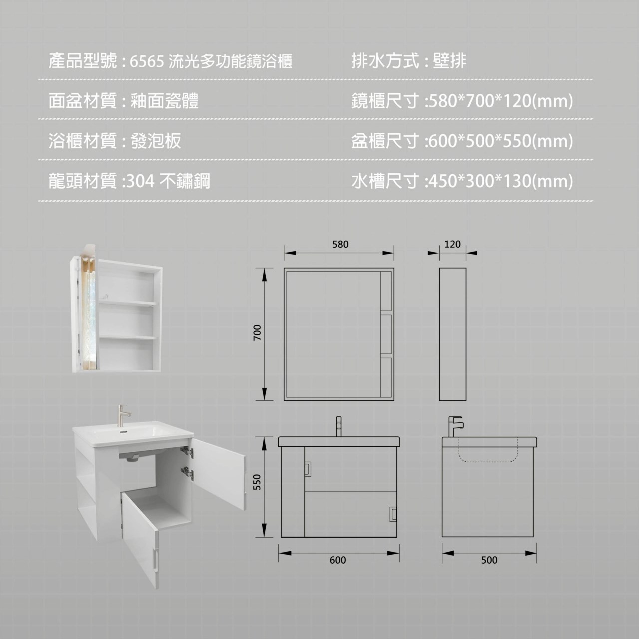 浴櫃尺寸 : W600 X D500 X H550 /mm