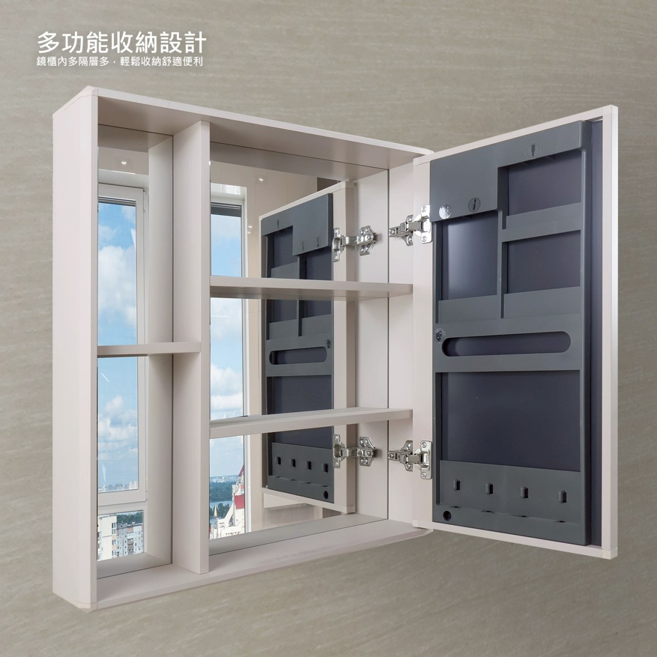 ★防刮弧線型雙開門把 ★多格置物收納鏡櫃 ★不鏽鋼五金組