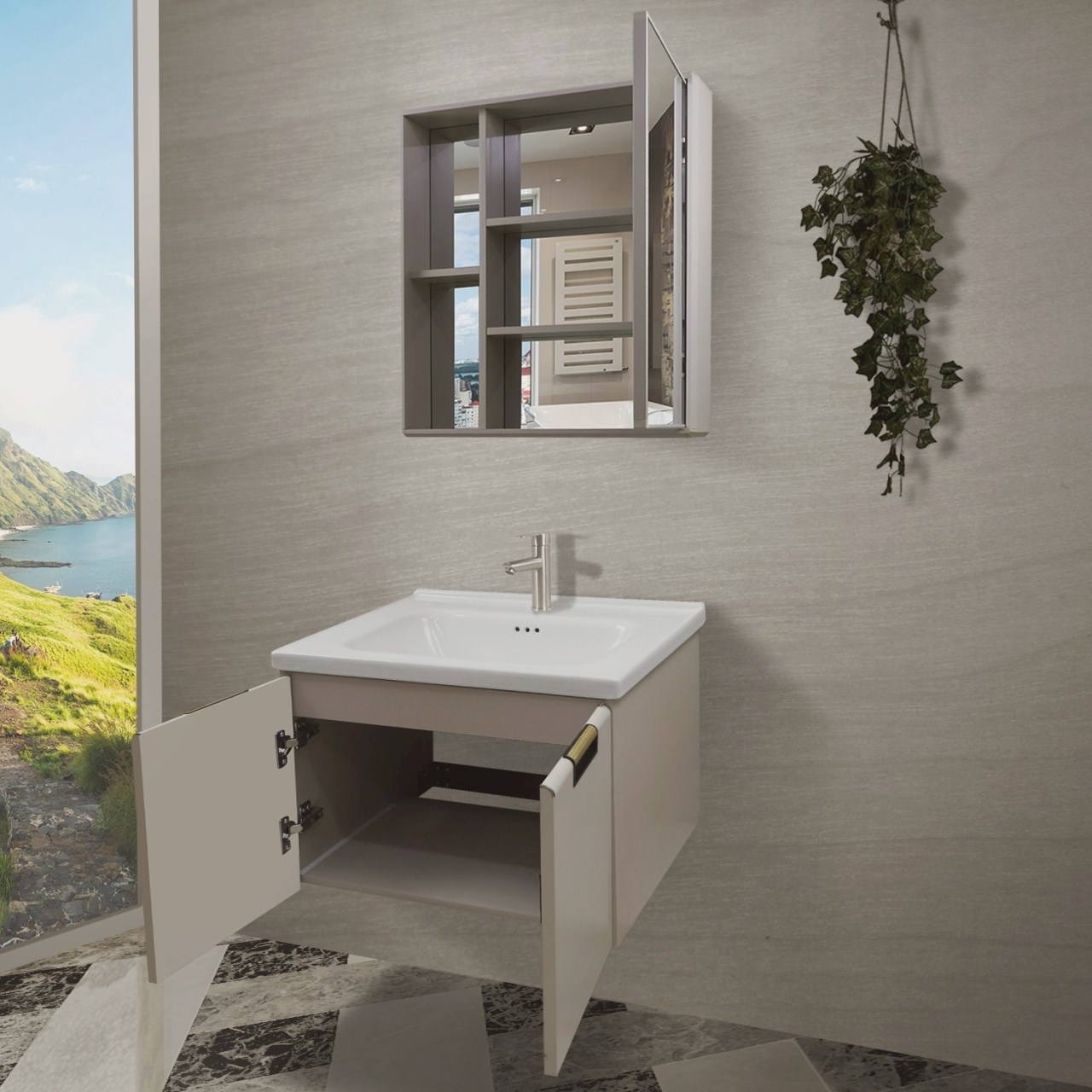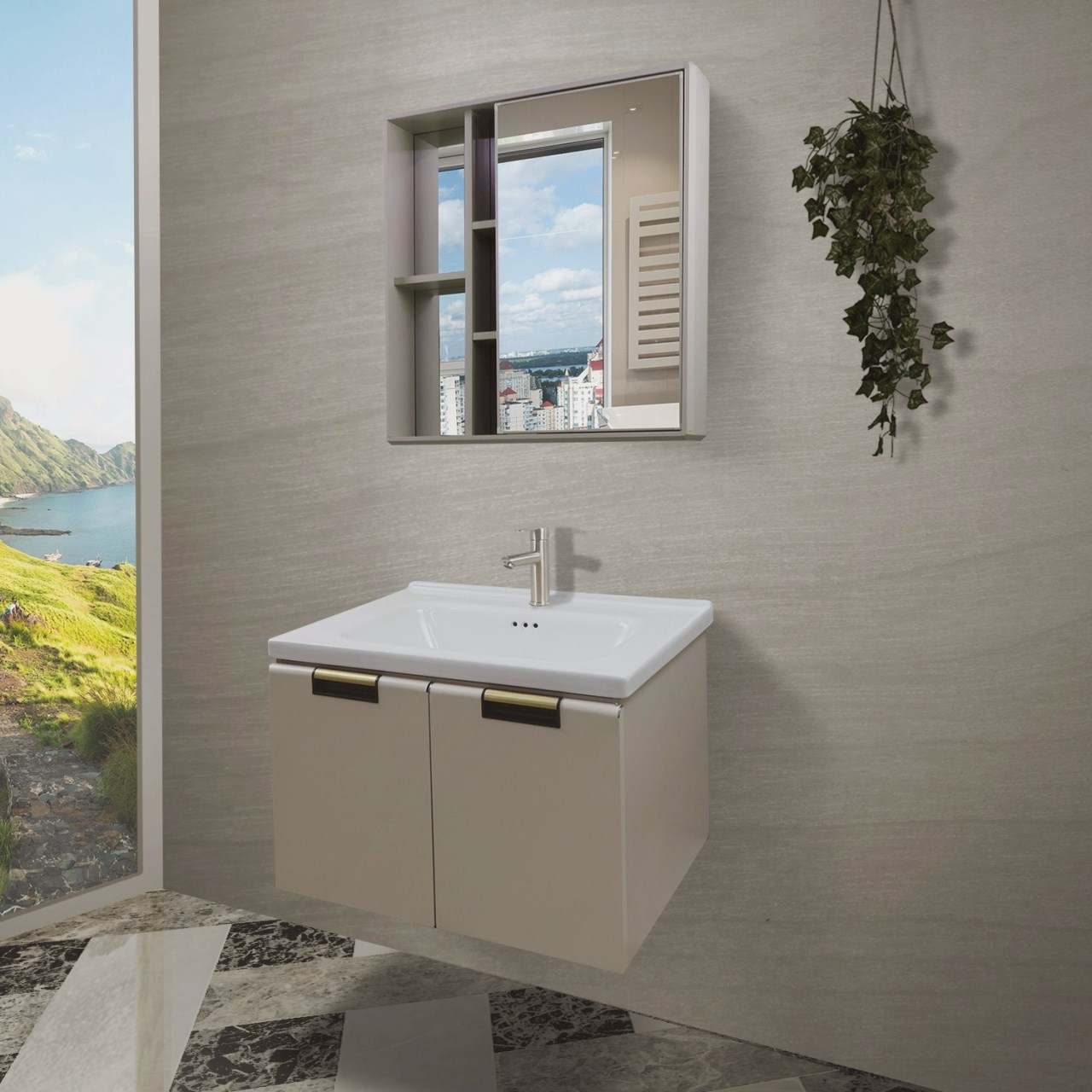 ★防刮弧線型雙開門把 ★多格置物收納鏡櫃 ★不鏽鋼五金組 鏡櫃尺寸 : W580 X D110 X H630 / mm 浴櫃尺寸 : W610 X D480 X H430 / mm
