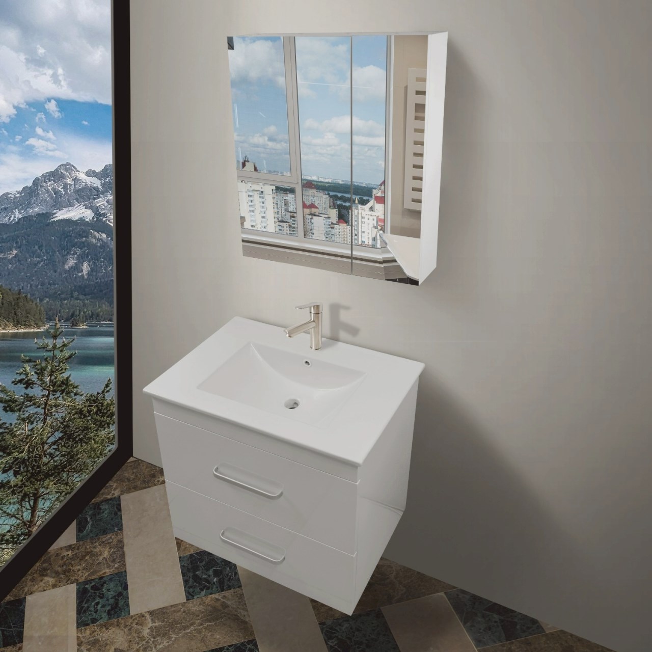 出清免運 完全防水 珍珠系列3件 70公分發泡板浴櫃鏡櫃 不鏽鋼龍頭