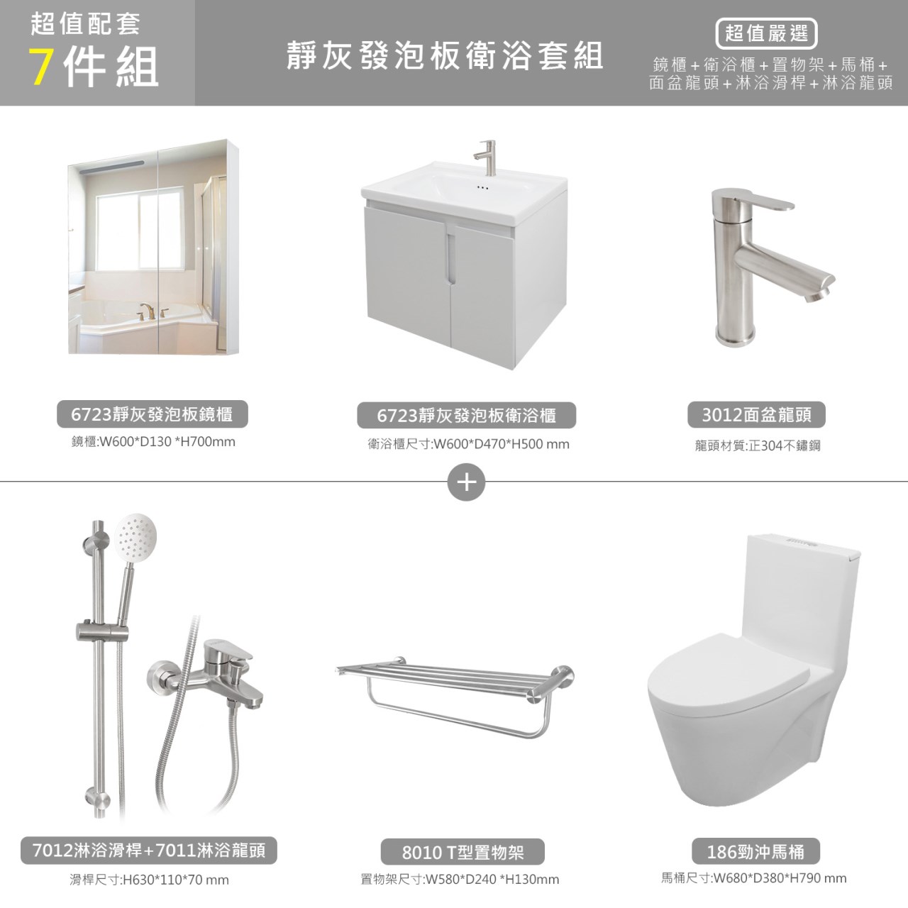 靜灰發泡板7件組(多尺寸)
