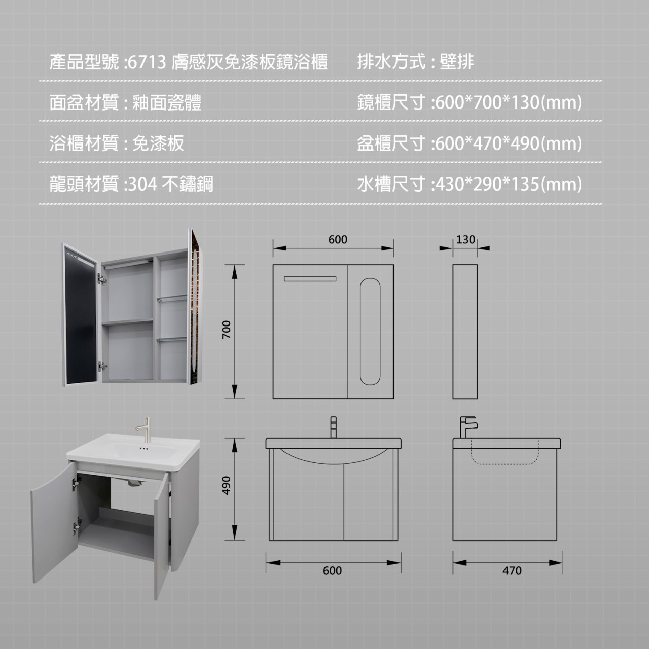 雅灰系列60公分7件組